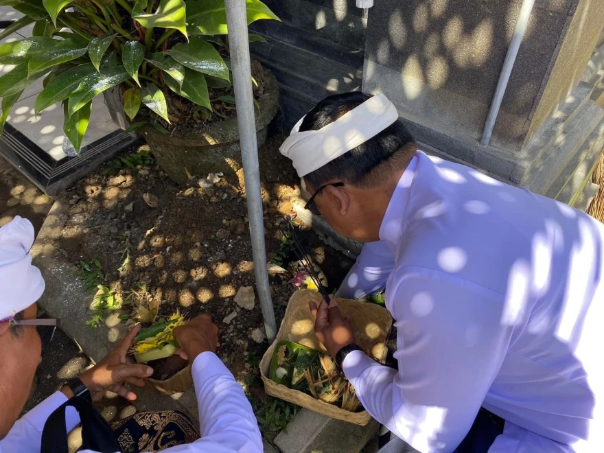 Caru Rsi Gana, Mlaspas Lan Mendem Pedagingan Padmasana Kantor Perbekel Kedisan