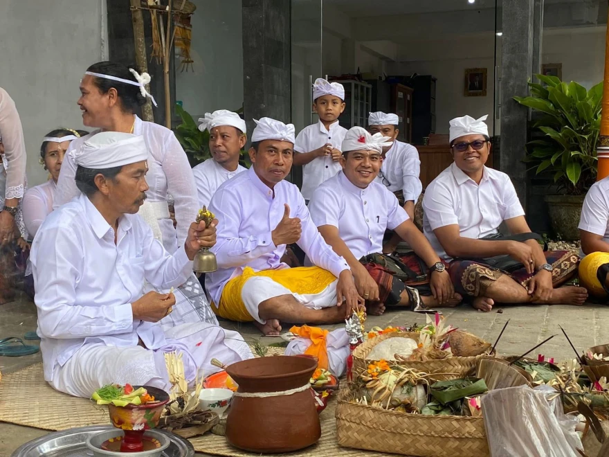 Nyineb serangkaian Piodalan ring Padmasana Kantor Perbekel Kedisan